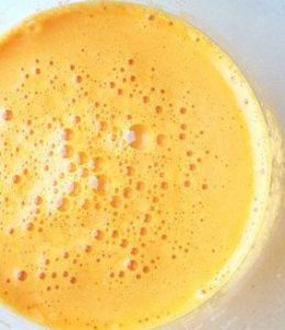 - Skozi sokovnik iztisnite sok iz pomaranče, korenja in buče.