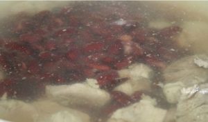 - Juha filtriramo, meso narežemo na porcije in ga damo nazaj v juho skupaj s fižolom.