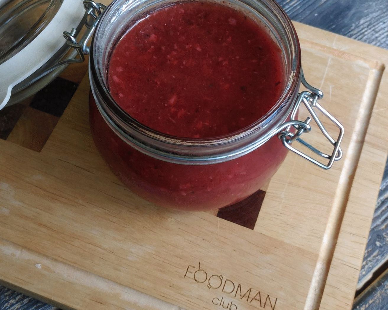 - Vročo omako prenesite v sterilizirane kozarce in zaprite priročen način. Izkaže se 2 banki po 500 g.