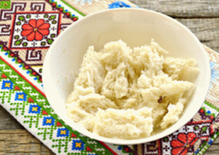 - Drobtino belega kruha zlomite v skledo in nalijte mleko.