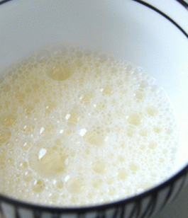 - V posodi z mlekom rahlo segrejemo mleko, jajce nasekljamo mleko, dodamo sol. Temeljito premešajte do polnosti raztapljanje soli.