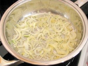 - Čebulo na rastlinskem olju prepražite v ponvi.