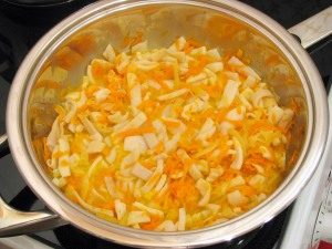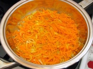 - Korenje damo, dušimo tri minute, občasno mešamo.
