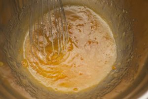 - Nato vlijemo pol toka oljčnega olja, mešanje z metlico.