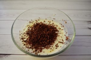 - Zmešajte med, 200 g jogurta, naribano čokolado in vanilin.