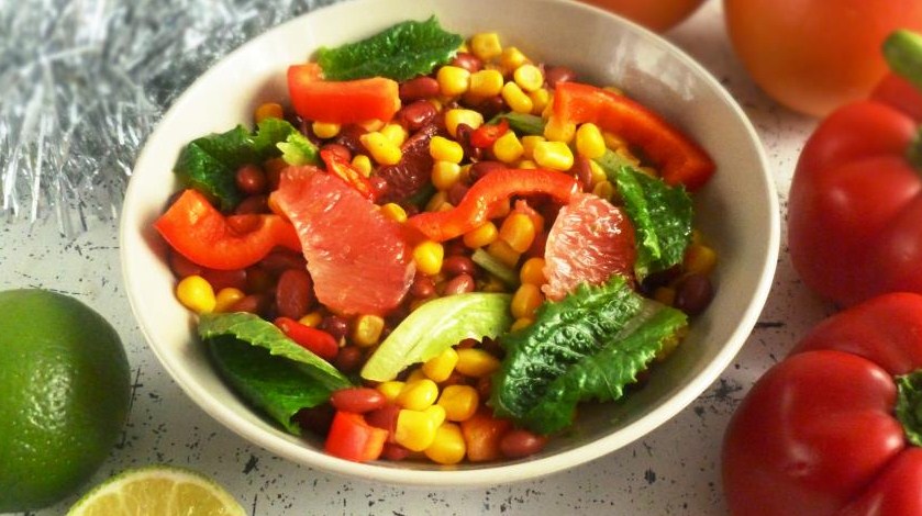 Slastna mehiška solata iz koruze, fižola in citrusov enostavna za kuhanje doma, imate čas, da naredite to jed samo 20 minut!