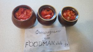 - Krompir olupite in narežite na kocke kot paradižnik. Razširi se noter krompir najprej krompir, mleta zelenjava, paradižnik, krompir, majoneza. Dodajte sol in začimbe po želji.