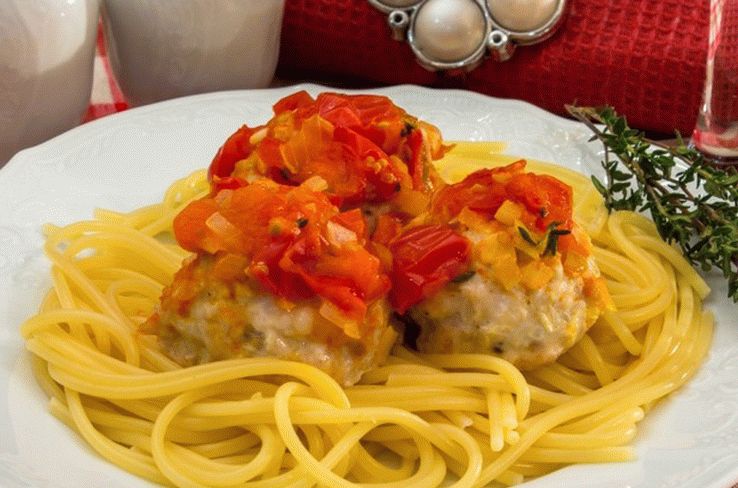 Glavna jed se kuha doma z mletim mesom v obliki okusnih mesnih kroglic z mocarelo presenečenje. Mocarelo lahko nadomestimo z drugimi siri, narežemo na majhne koščke.Ta jed se lahko pripravi do testenin, riža, krompirja.