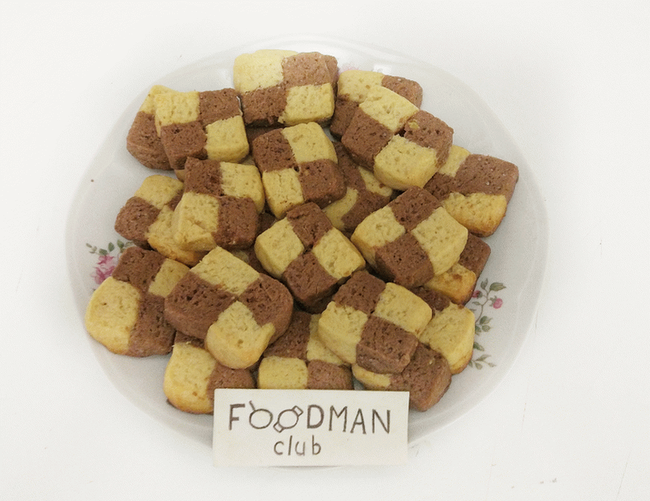 - Gnetemo dve vrsti testa: temno in svetlo. Oba preizkusite v pravokotnike debeline 1 cm, postavite drug na drugega, malo Vzemite in pošljite za 20 minut v hladilnik.