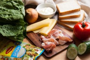 - Povrhu zelenjave položite list solate in tanko rezino sira, vse pokrijemo z drugim kosom kruha.