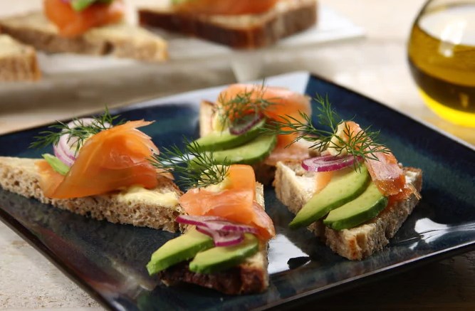 Lepo in zelo okusen dimljeni losos lahko postrežemo na sendviči z rezinami avokada Doma pripravite prigrizek praznična miza.