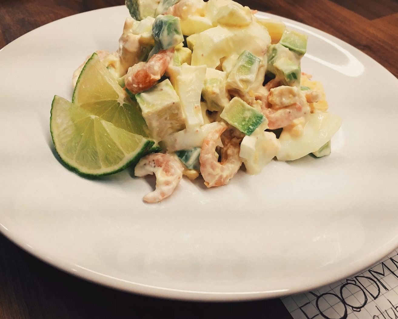 - Jajca narežite na trakove in jih dodajte k avokadu kozice.