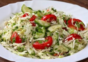 - Za preliv zmešajte limonin sok, začimbe in olje. Dolivanje goriva solato, dodamo sesekljano zelenico.