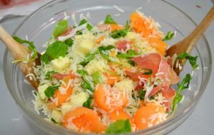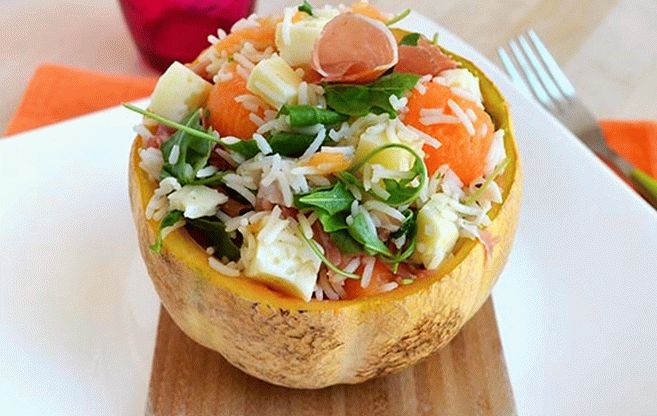 - Solato lahko postrežete v skledi z melono. Dober apetit!