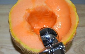 - Prerežite melono, odstranite semena iz središča in uporabite žlico, da sladoled izvlecite vse meso.