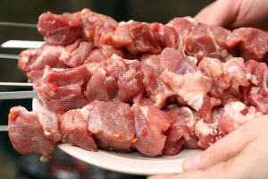 Ko mine čas, ki je namenjen za vložene kumarice, morate začeti na vrvico teletine na nabodala.