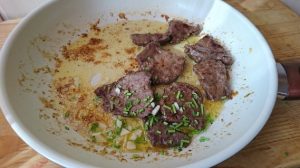 Recepte s piščančjimi jetri sem že predlagal, predlagam še enega solata z jetri, tokrat z govedino – okusna topla solata s goveja jetra, ki jih je enostavno kuhati doma. Glede tega količina sestavin, ki jih lahko naredite štiri porcije posode.