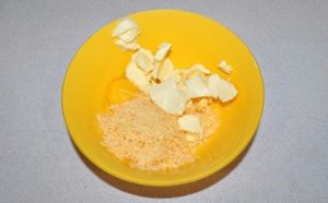 Za kuhanje cmokov morate sir zdrobiti na fino grater. Nato ga zmešajte z jajcem in maslom pri sobni temperaturi.