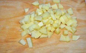 Krompir olupite in narežite na majhne kocke. Pošlji krompir v vreli vodi.